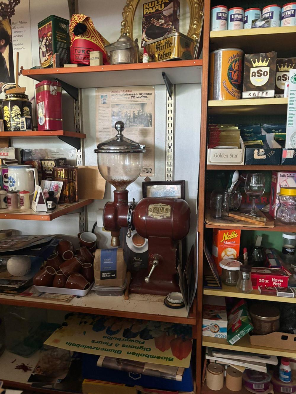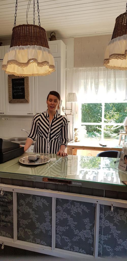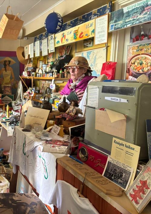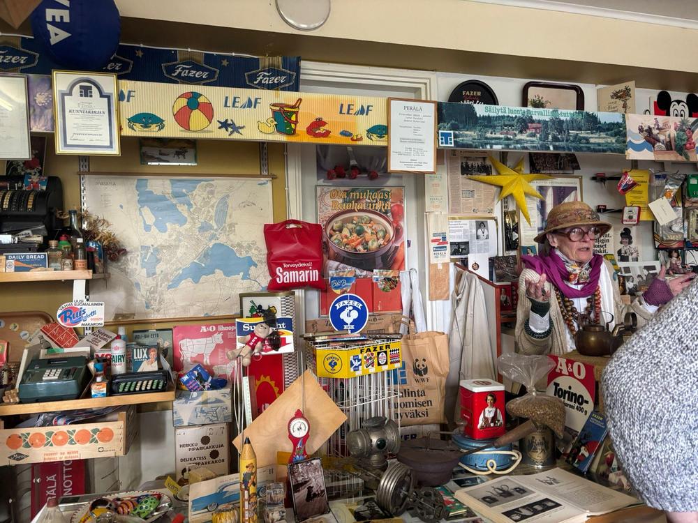 2025 kuvagalleria: vierailukohteena Perälän kauppamuseo Huugontie1 Säynätsalon Lehtisaaressa. Marjukka Perälä tiskin takana kertoi suvun ja kaupan historiasta.
