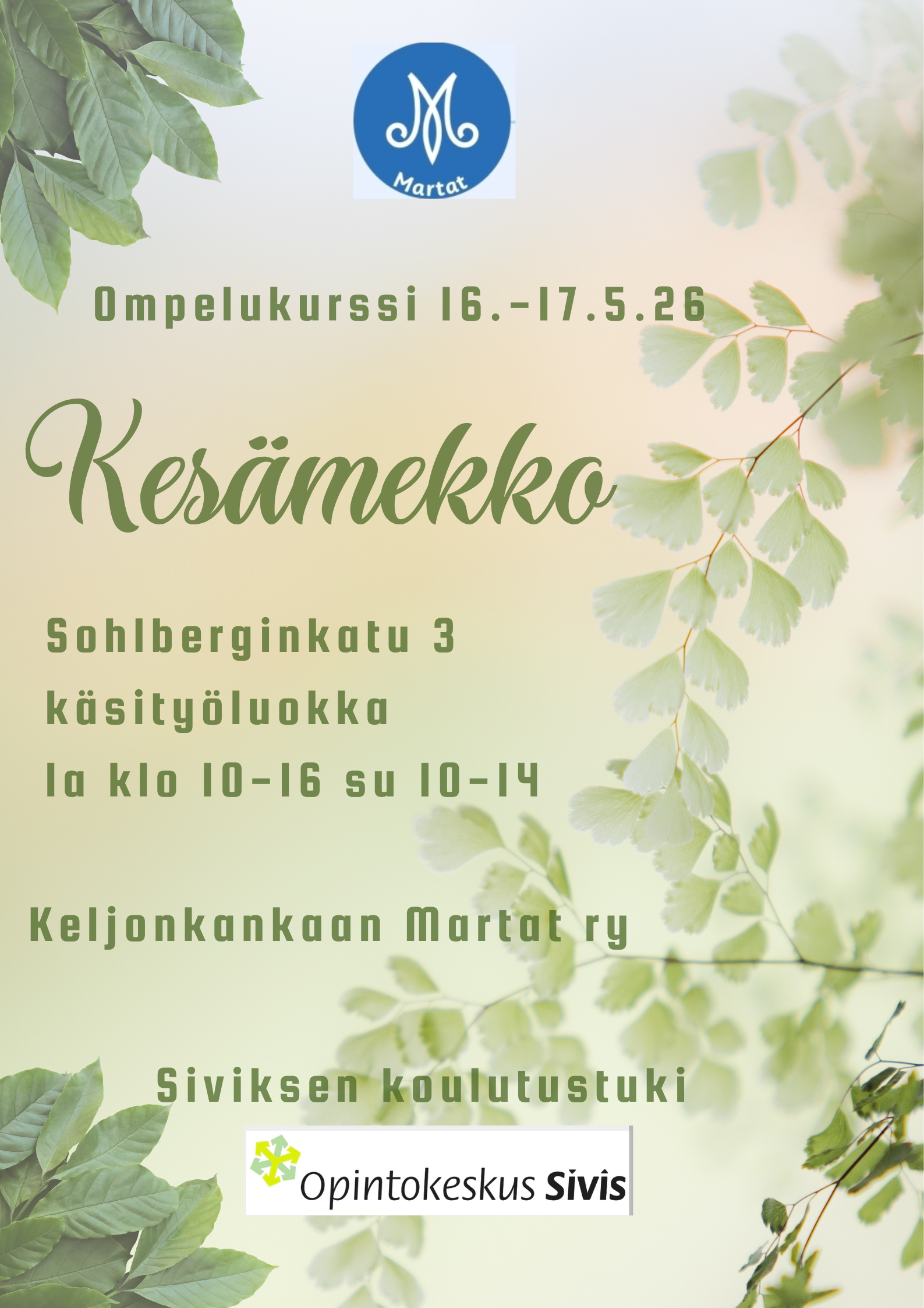 Kesämekon ompelukurssi 16.-17.5. Keljonkankaan yhtenäiskoululla.
